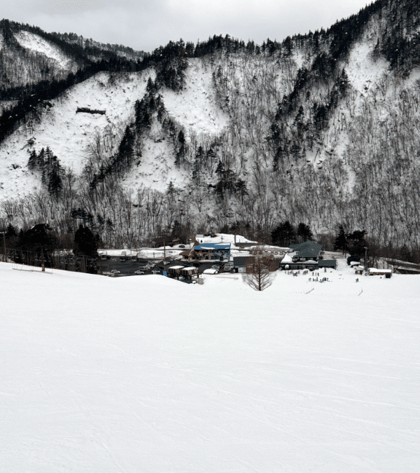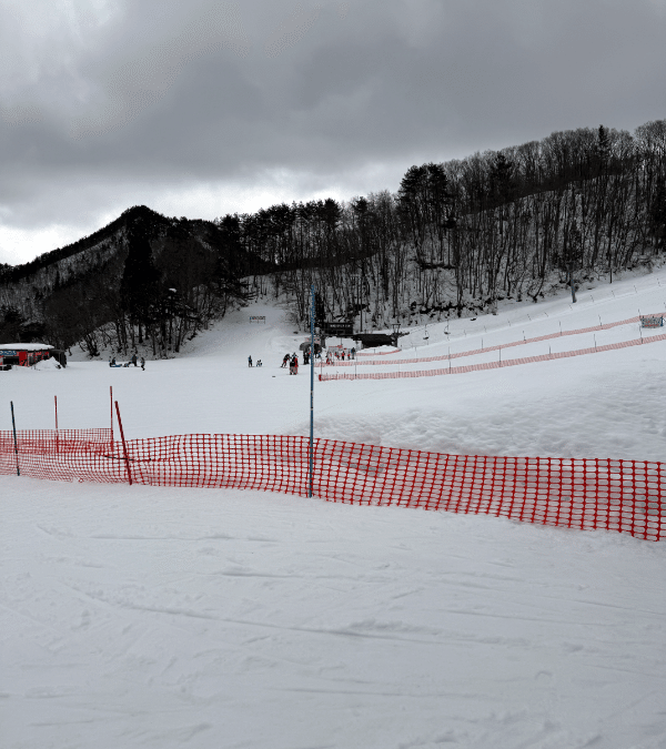 このスキー場、リフトは5本。うち4本2組は平行線なので、実質3本でカバーしている。どうやら廃棄されたリフトも1本あるようだ。小学生たちがたくさん乗って滑っているリフトAB線に乗って、開けたコースを1回滑るが標高が低いので雪はガリガリだ。もう一度同じリフトに乗って今度はペンション街というかロッジの隙間の道を滑るコースを滑ってみた。ペンションとして営業している建物はないように見え、営業しているロッジもなさそうだ。廃墟の間を滑る感じがまた斬新。