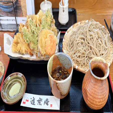 昼食には早いので、ゲレンデの食堂ではなくて会津田島の街の中で蕎麦を食べたい。何度か行ったことのある駅前の蕎麦屋へ寄ってみたが、つい目がくらんで「舞茸天もりそば大盛り」を注文してしまった。これだと、あきらかにゲレ食よりも高い。舞茸てんぷらは余計だったなと思いつつ、完食した。