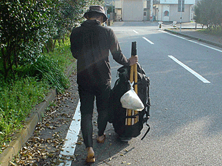 STOWBOARDにパックカートを乗せて上総湊駅へ。脇にさしたクラトワで舵取り。