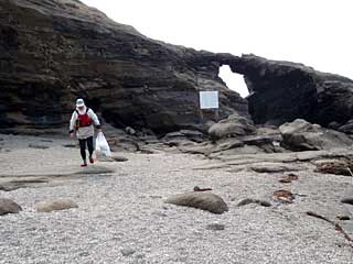 安房崎を回ると風裏になってきて、やや漕ぎやすくなってきた。すましと海岸に上陸してゴミ拾い。テントが数張あり、キャンパーがくつろいでいる。ペットボトルを中心に拾う。