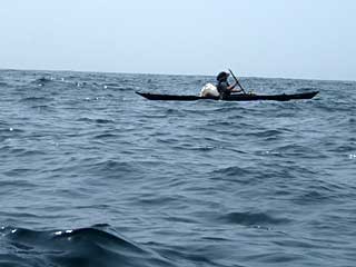 その後写真をいただいたので、久々に自分が漕いでいるところを掲載。ちなみに後ろに積んでいるのは横瀬島で吐月工房氏が拾ったゴミとゴミ袋。