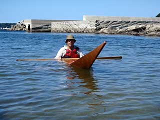 クルマの陰で組み立てていても汗がボタボタ。あまりに暑いので出艇直後に何回かのスカリング&1回のロール。