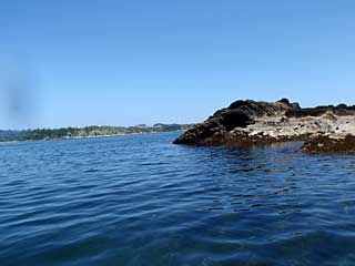 満潮後の引き潮だがまだ引ききっていないのでいつも露出している岩の頭も海中にある。