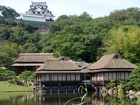 城下の庭園(玄宮園)から眺めた天守はなかなかよい。