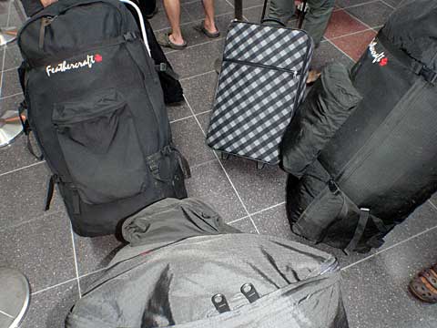早めに9時ころ出発カウンター前に行くと、すでにYoshidaさんが同じような格好で待ちかまえていた。その後、初めてお目にかかるbaron-papaさんが到着、最後にカサハラ氏が現れた。