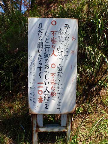 諸鈍に上陸したらほどなく駐在さんが原チャリに乗ってきた。理由はこれか?我々は見事に条件にハマっている。
