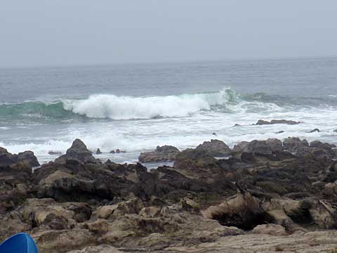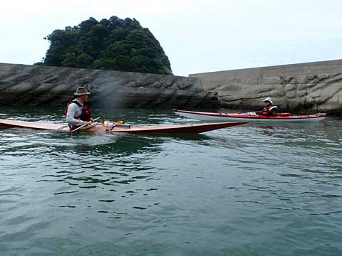 いつもの宮川湾だが、出艇場所の磯にはもう2m近いうねりが入ってきている。岩場の隙間から波しぶきが上がっている。こんな時に来たのは実は初めてだ。