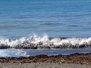 ゴミだらけ&波の飛沫あり