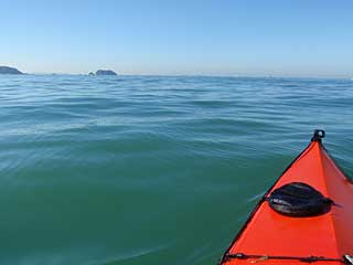 再び漕ぎ始めたら、右のスポンソンの空気が抜けていた。バルブをきちんと締めずに右スカリングをやったためだろうと思い、傾城島脇で北東風を避けながらシーソックをあけ、空気を入れ直す。スポンソンに穴が空いているわけではなさそうだった。