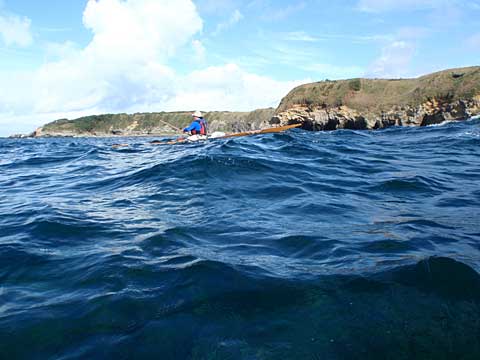 こんな感じで波と格闘する。漕ぎにくいことこの上なし。冷や汗出まくり。