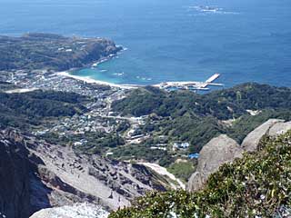 山頂からの神津島集落中心部