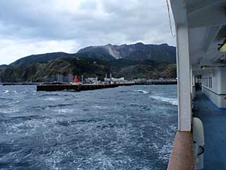 日中の航行なので、アイランドホッピングをデッキから楽しむことができる。式根島では学校の先生らしき方の転任に伴う見送り風景が見られた。こういう風景を見ると船旅っていいなとあらためて思う。