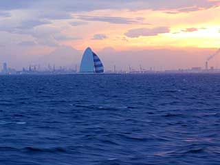 富津岬沖の第一海堡、第二海堡(工事中)を間近に眺め、横浜のビルのシルエットとベイブリッジが見える。アクアラインの「海ほたる」を右手に、トンネル部分の空気抜きである「風の塔」を左手に見るころには羽田からの飛行機が四方に散っていくのが見え、日が落ちるとお台場脇をすり抜け、レインボーブリッジをくぐり、竹芝桟橋到着である。都会のど真ん中に着岸するのはドラマチックではあるが、何と東京は光に満ちあふれているのか。同じ都内の神津島の暗闇のキャンプ場からのギャップが著しすぎる。