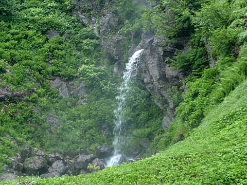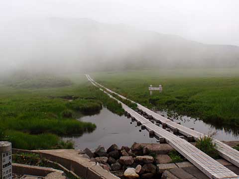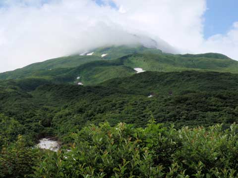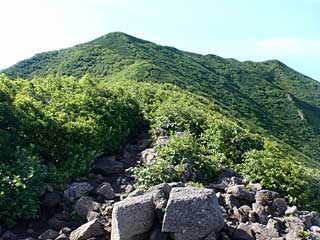 そのまま旧ゲレンデを登り詰め、スキー場のコースだったと見られる切り開きを登る。エーデルワイススキー場に接近し、枯木沼という湿地を抜けてさらに登る。エーデルワイススキー場の最上部のゲレンデを左手に見ながら歩き、ようやく登山道らしくなってきた。