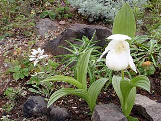 アツモリソウ(右)とウスユキソウ(左)