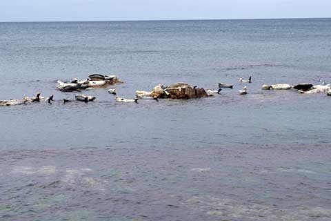 午後はさらに風が強まった。幸い雨は止んでいるので、船泊の東にある金田ノ岬までアザラシ君たちを見に行く。