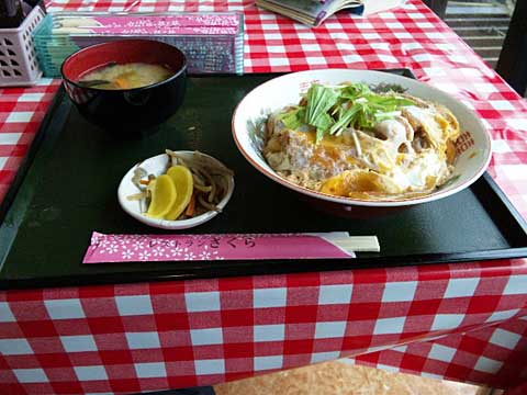 女性が敬遠したのも何となくわかる感じがする。決しておしゃれな感じのレストランではない。さらに私が注文した「農業ランチ」なるカツ丼定食はラーメン丼がカツ丼の丼になっているようなメニューなので、女性一人では注文しにくいと想像される(実際はもっと沢山普通のメニューもあるんですよ・・・)。