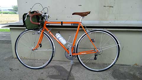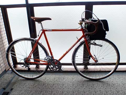 ということでつらつら考えて出た結論は、スポルティーフ車である。ランドナーというタイプのツーリング自転車があるが、そこまでヘビーなものは追求しない。キャンプ道具を一式持ってロングツーリングをするのを目的とはせず、もう大人なので宿泊施設を利用してせいぜい1泊か2泊の自転車ツーリングがいい。スポルティーフはランドナー的な旅指向の自転車だが、ロードレーサー並の大きくて細いタイヤを履き、スピードが出せる快走車である。帆布製フロントバッグとサドルバッグ程度を装着し、身軽に速く移動できる。
