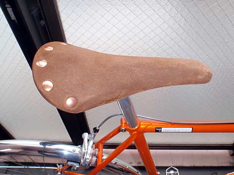 サドルです。汗で色落ちしてズボンのケツが茶色くなるのでは?