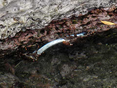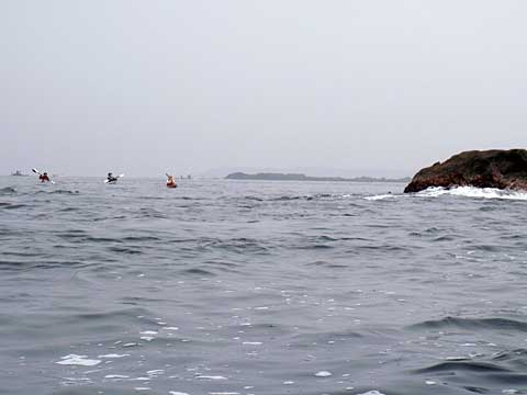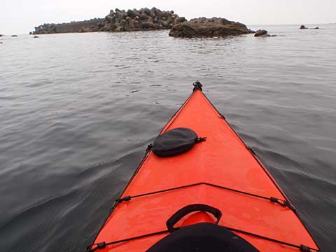 海況は風(北風)も弱く波もほとんどない好コンディション。剣崎でUターンして、ロックガーデンの間を縫うようにして岸ベタで戻ってくる。カフナは艇長が短いのでこういったところは得意中の得意分野である。水深がたぶん15〜20cmもあればハルをこすらずに通過できる。