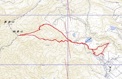 第5ロマンスリフトから霧の塔までのルート(赤:登り、青:降り)