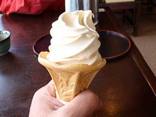 そばソフト(食べかけ)お手軽だがいい雪質の時にいい斜面を見つけられるとこの上なく楽しいエリアだった。