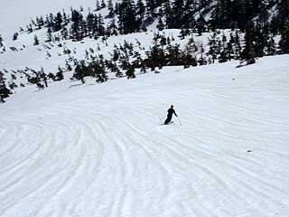 で、シーズンラストに選んだのは乗鞍岳。今回は土曜日に年休をとり、乗鞍行きでは初めてインフィールドのツアーに一日だけ申し込んだ。一人で広大な乗鞍を滑るには寂しすぎるから・・