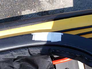 さすがにさらに亀裂が伸びて、ある瞬間に割れたりすると困る。思い出したのはオオタガキさんが7月に同じような症状の修理をカサハラ氏に相談していたことだ。早速オオタガキさんにメールして修理方法について問い合わせた。すると、ガラスクロステープを貼ることを推奨されたという。もっとも、オオタガキさんはホームセンターで適当なガラステープを見つけることができず、FRP補修キットを購入して修理されたとのことだ。