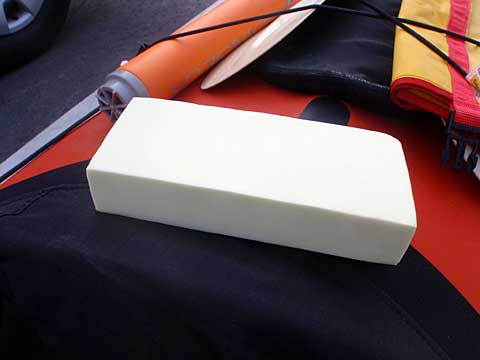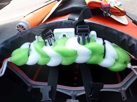 まず、下の豆腐のようなものはビルジスポンジ。今までセーム革を使っていたが、もう少し吸水性のいいものはないかと探した結果、100円ショップにぶら下がっていたので購入。ロール後には必ず若干の水が船体内に入り込むが、それを吸水するにはもってこいだった。