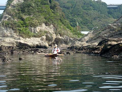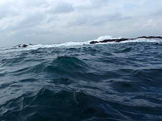 2日ほど前から北東風が強い。予報では波2m。これはチョイ漕ぎは難しく、入り江でロール練習だけになるかと予想して現地に着いてみたら、意外と波が高くない。ただし風力発電のプロペラから推測して北東風は強そう。とりあえず通常通りに時計回りで城ケ島を一周することにして8時出艇。安房崎まで風に押されたが、今月初めの海況ほど荒れてはいない。すましと海岸にいったん上陸するが、北風でゴミはなさそう。カヤックから上がると熱が奪われこころもち寒い。今日のウェアはsurf8のロングジョンといつものプルオーバー。漕いでいると厚くもなく寒くもないのだが・・・