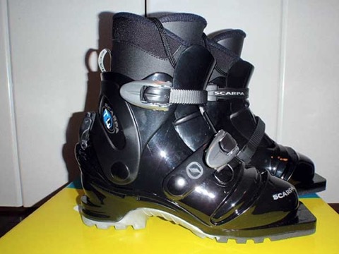 もちろん、テレマークビンディングはATスキーとは違い、パワー伝達だとか剛性だとかは本来あまり関係がないものだった。つま先のコバを3ピンやワイヤーでブーツを板につなぎ止める75ミリノルムのテレマークブーツ(特に革ブーツやハイトの低いスカルパT4のようなプラブーツなど。プラスティックのテレマークブーツは母指球の上の甲の部分にジャバラがあり、ブーツが脚の力によってそこで曲がる。プラスティック製なのにテレマークポジションが取れて後脚のカカトが上がるのはこの構造による。ブーツハイトの高いプラブーツでもアルペンブーツに比べればブーツ剛性は低く、板へのパワー伝達は弱い)に対して、NTN(ニューテレマークノルム)のブーツはアルペンスキーのようなスキー操作(エッジに乗るカービングターンなど)をある程度可能にするもので、土踏まずでブーツを固定するのでアルペンブーツとテレマーク用75ミリノルムブーツの中間に位置づけられるだろう。